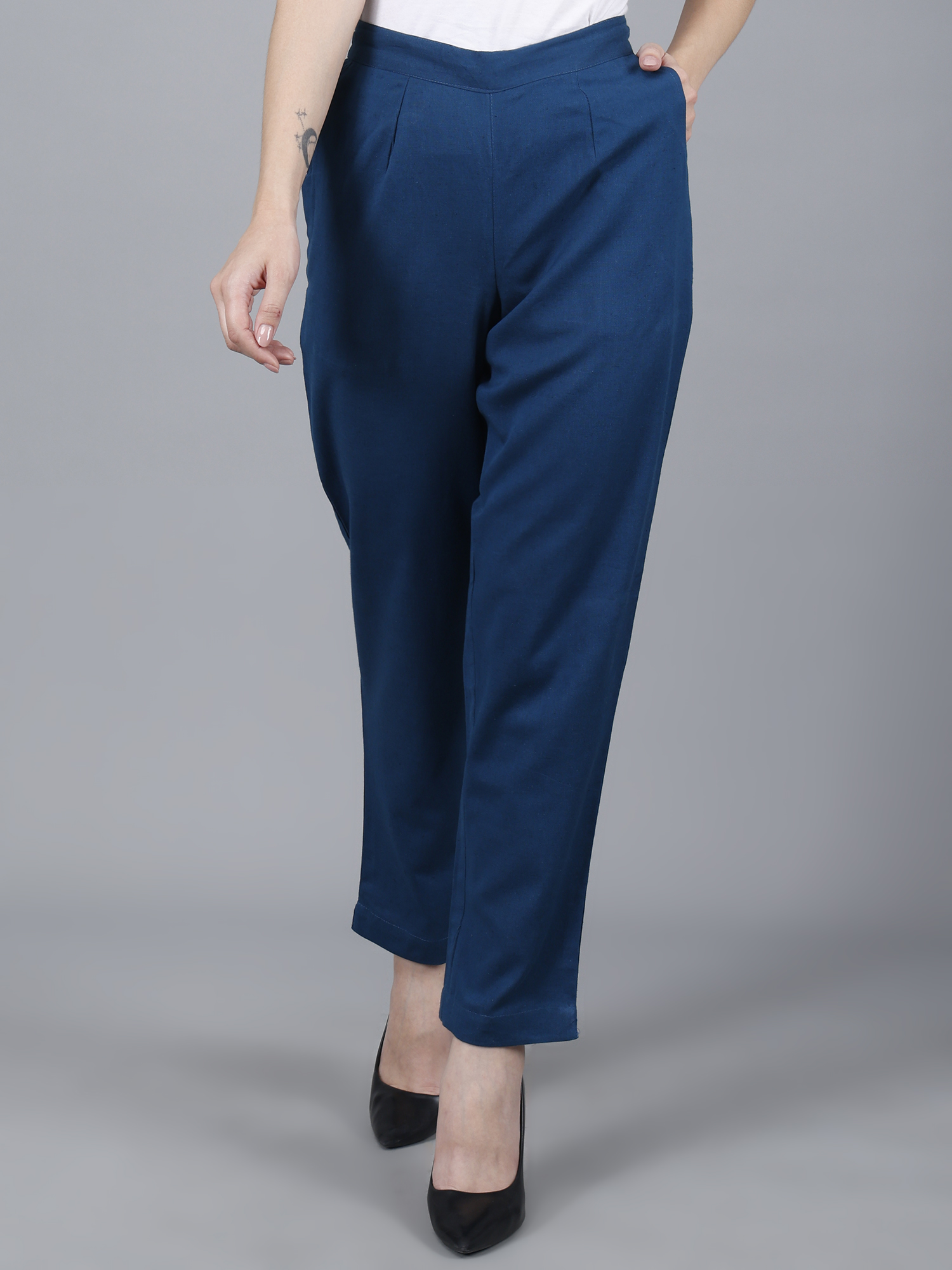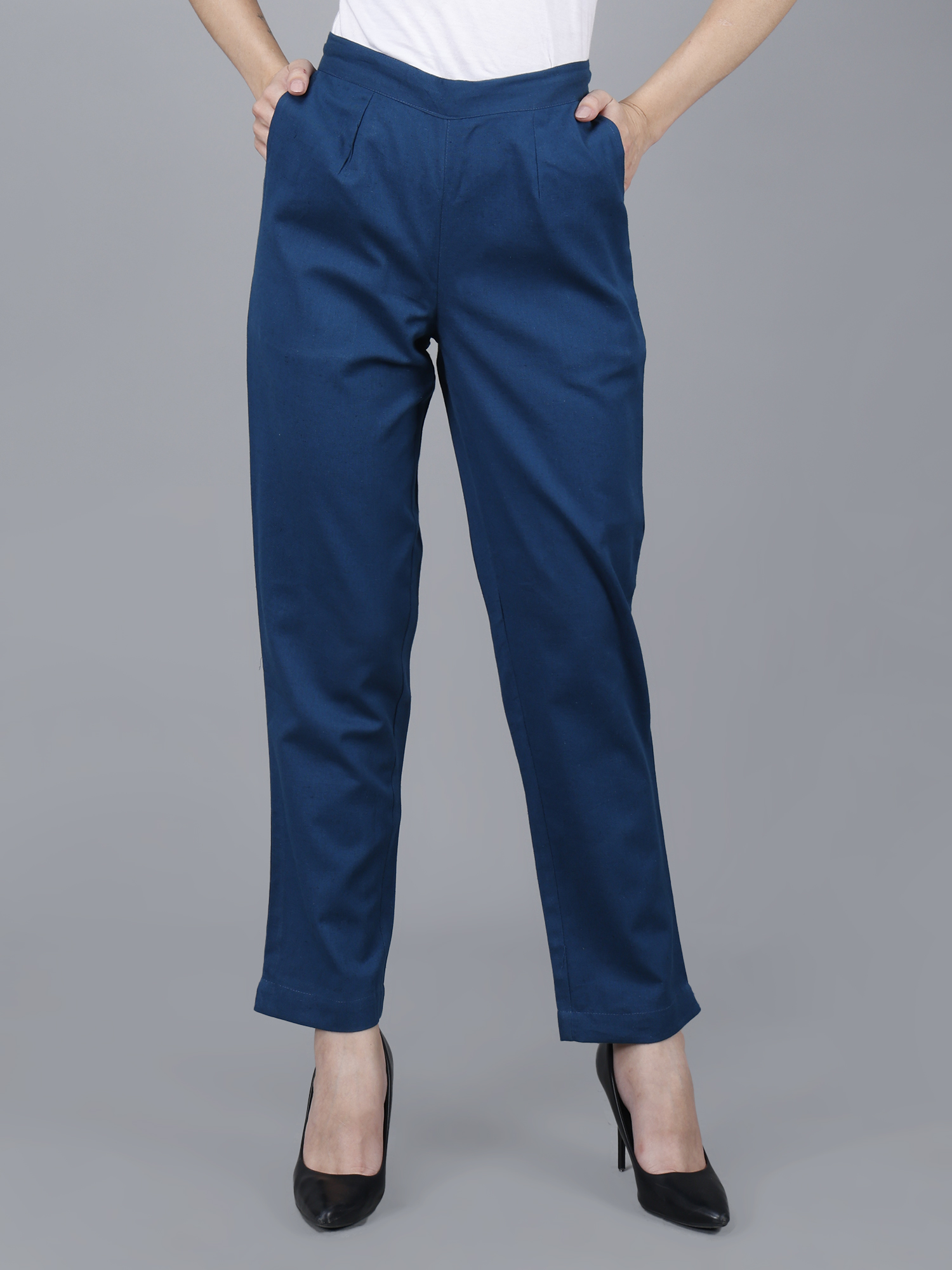Women Everyday Cotton Pant | Color: Peacock Blue | Premium Quality, Front Pleated, 2 Deep Pockets, Half Elasticated with Drawstring | Rs 2800 for Pack of 8pc of S-5XL @ Rs 350 Per Pc | Size Refill Available