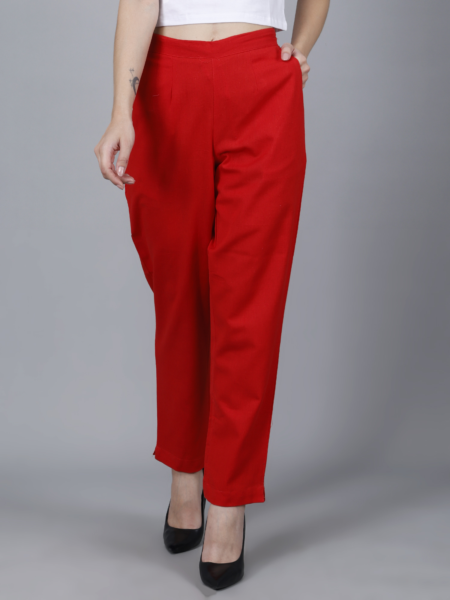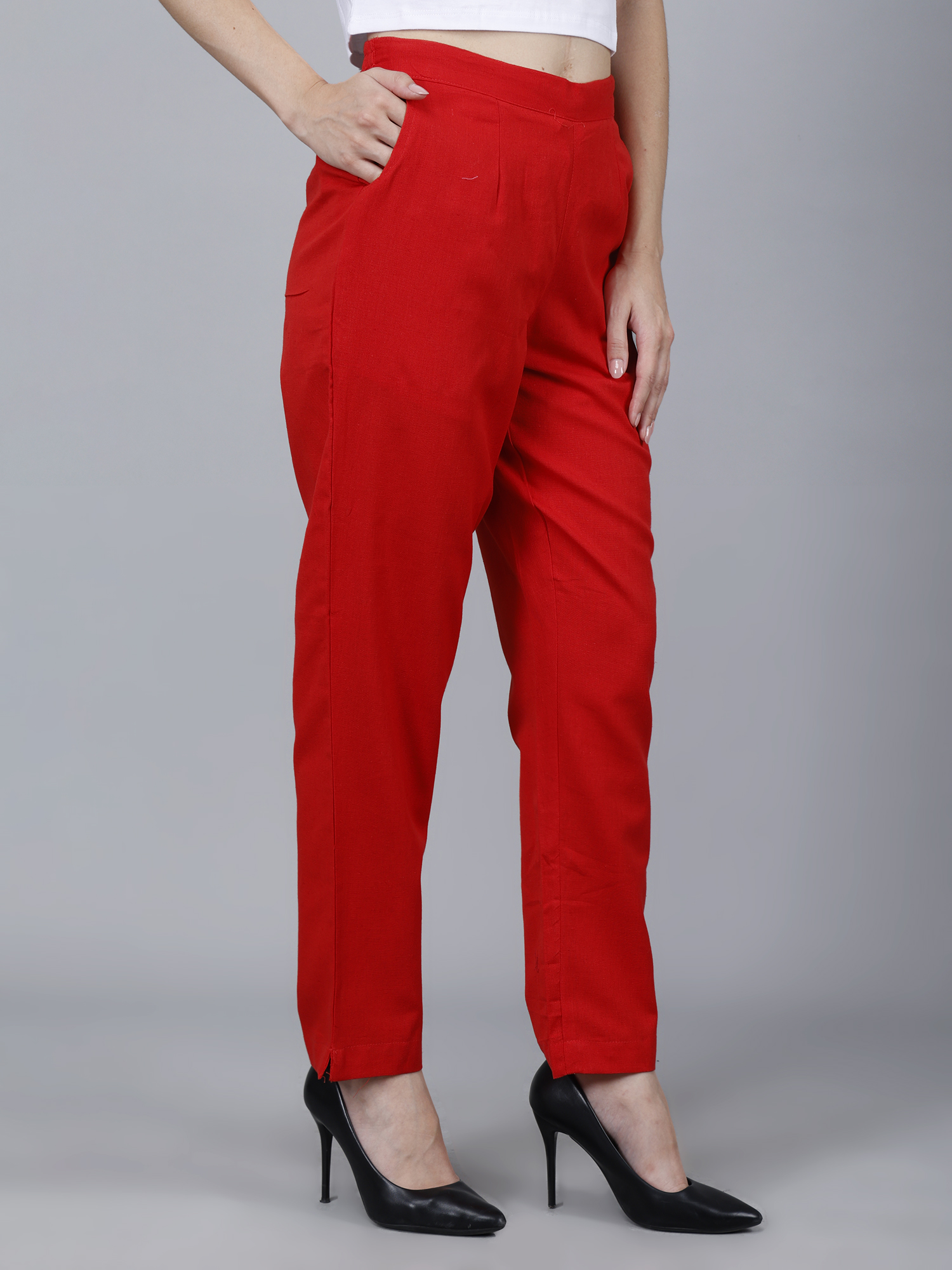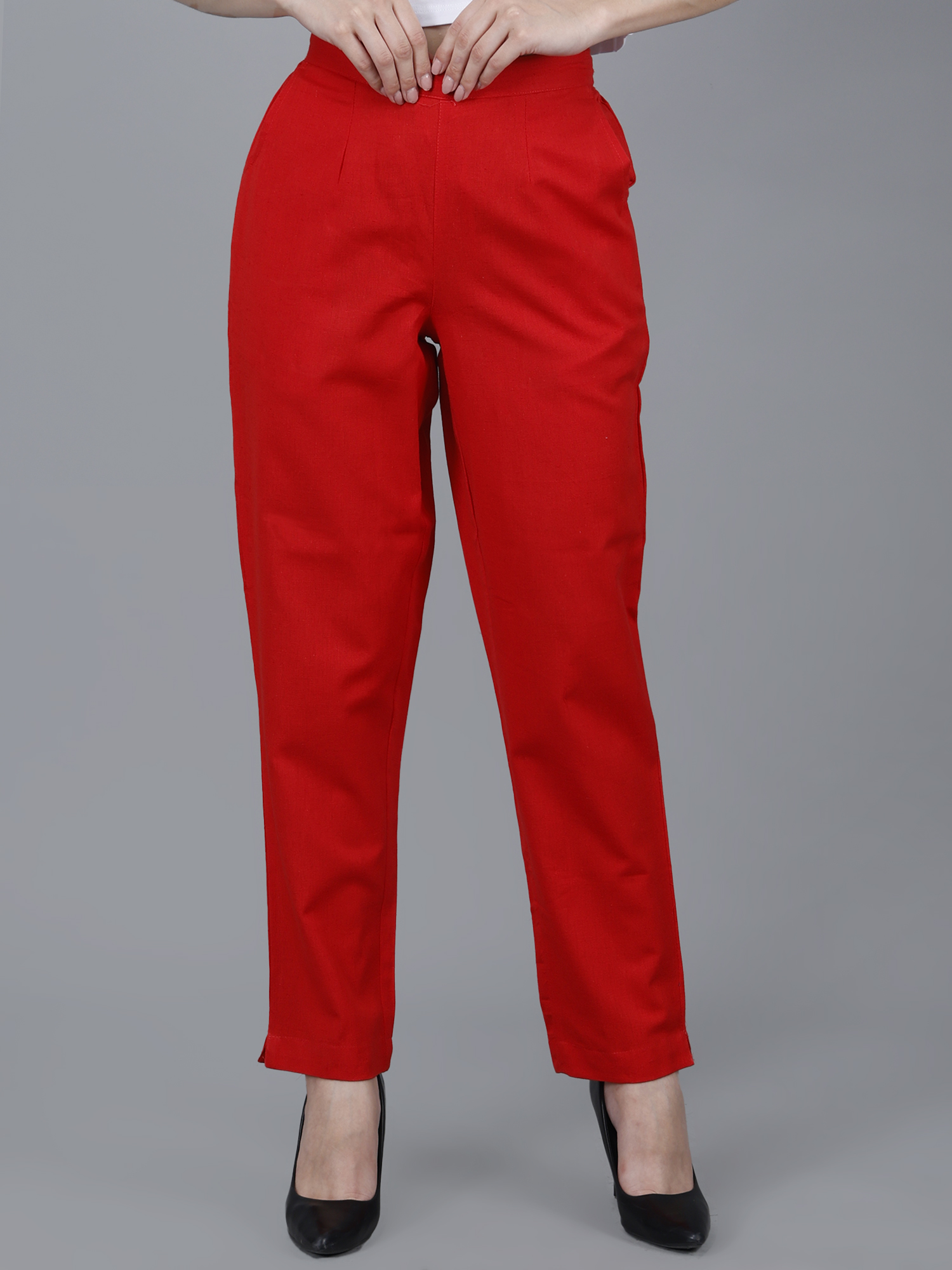 Women Everyday Cotton Pant | Color: Red | Premium Quality, Front Pleated, 2 Deep Pockets, Half Elasticated with Drawstring | Rs 2800 for Pack of 8pc of S-5XL @ Rs 350 Per Pc | Size Refill Available