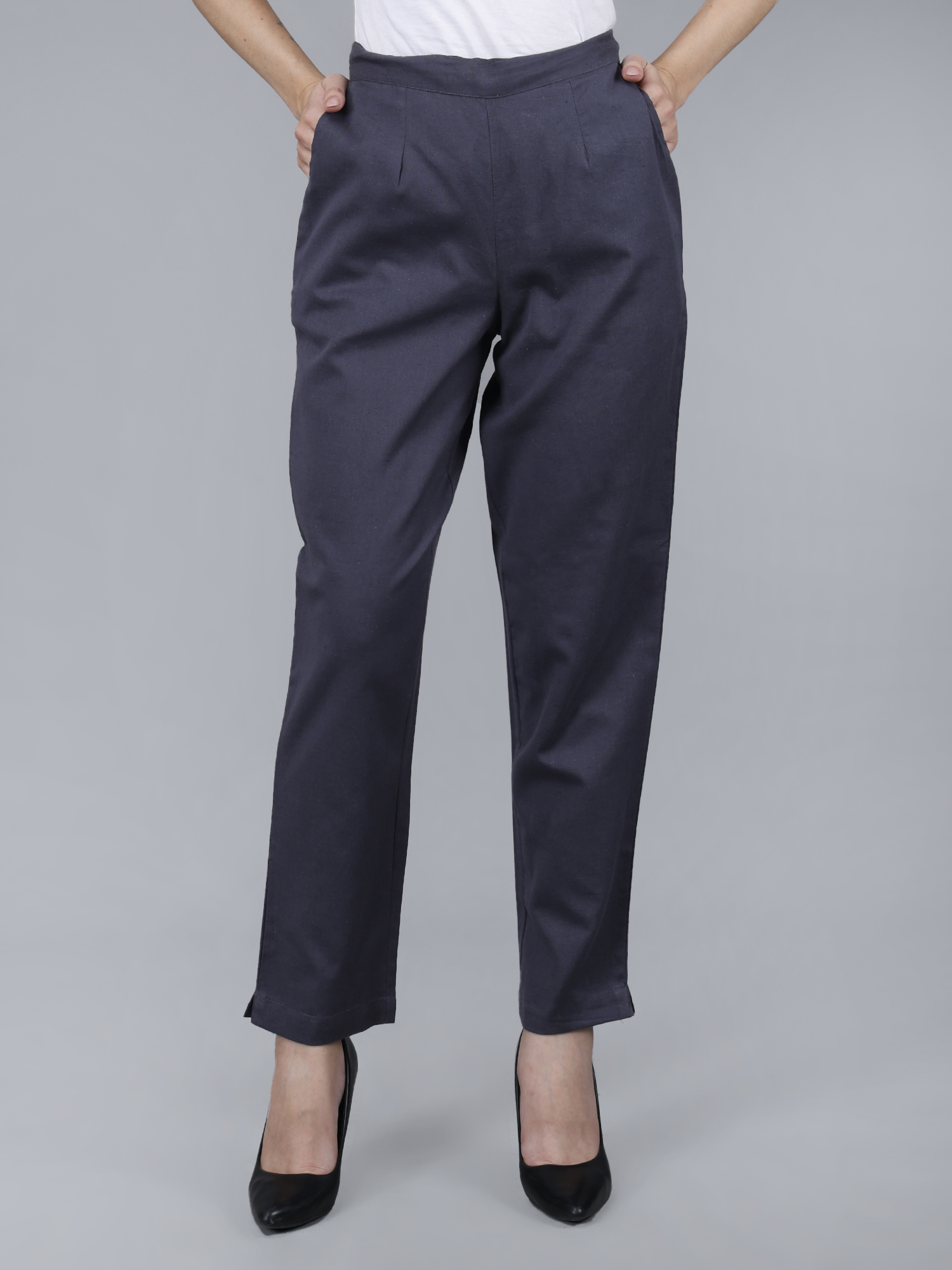 Women Everyday Cotton Pant | Color: Smoke Grey | Premium Quality, Front Pleated, 2 Deep Pockets, Half Elasticated with Drawstring | Rs 2800 for Pack of 8pc of S-5XL @ Rs 350 Per Pc | Size Refill Available (Copy)