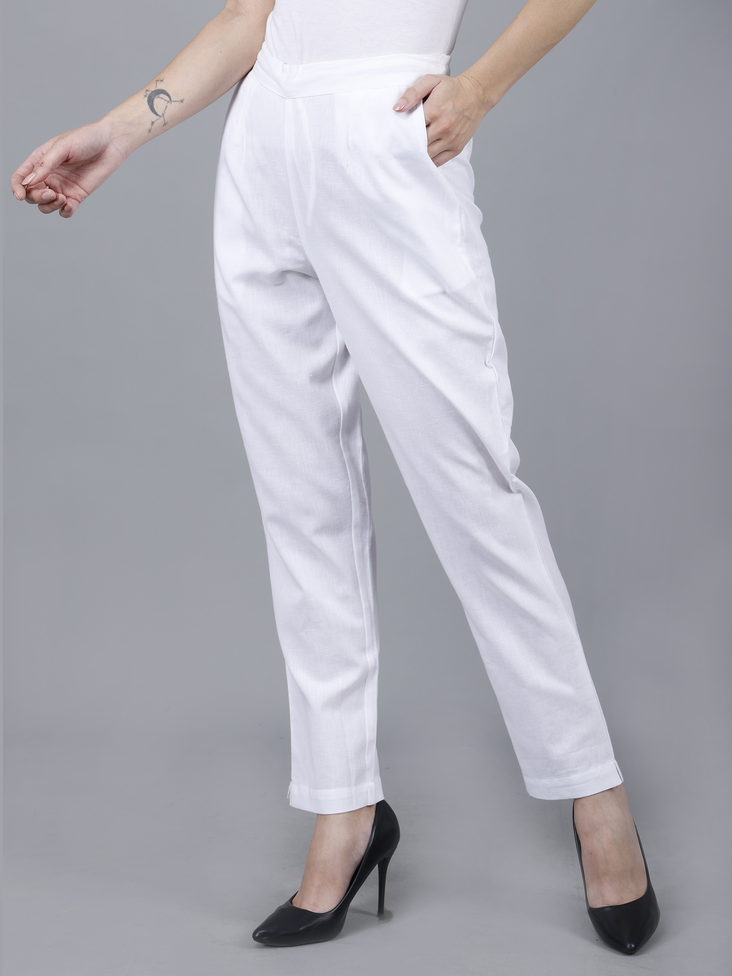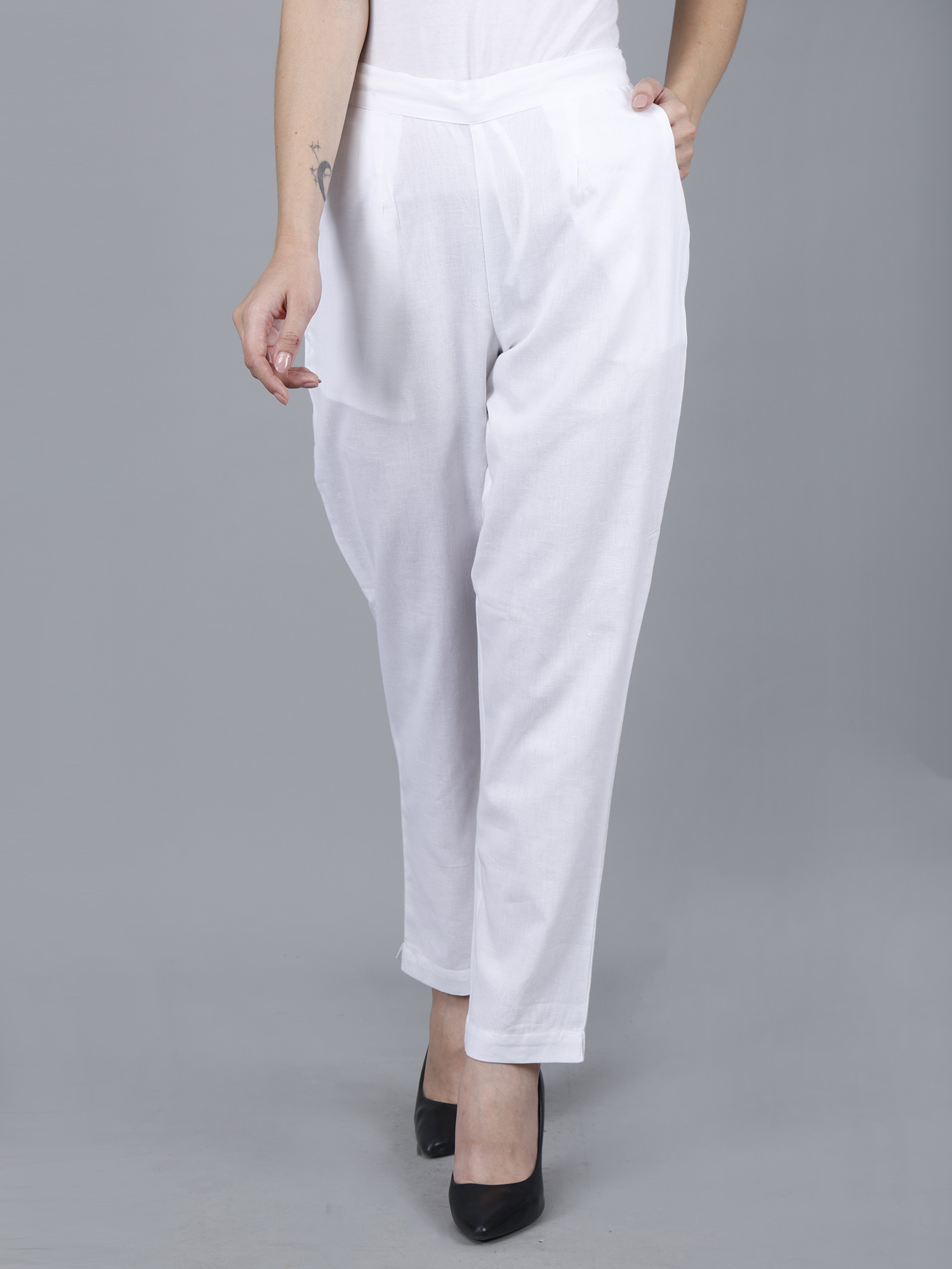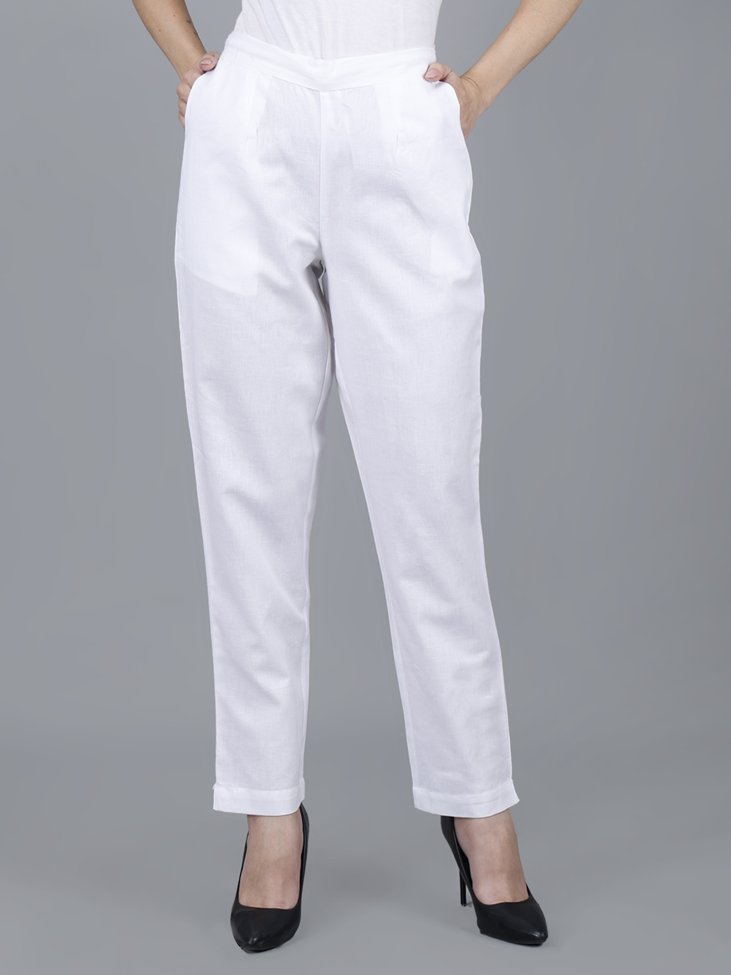 Women Everyday Cotton Pant | Color: White | Premium Quality, Front Pleated, 2 Deep Pockets, Half Elasticated with Drawstring | Rs 2800 for Pack of 8pc of S-5XL @ Rs 350 Per Pc | Size Refill Available